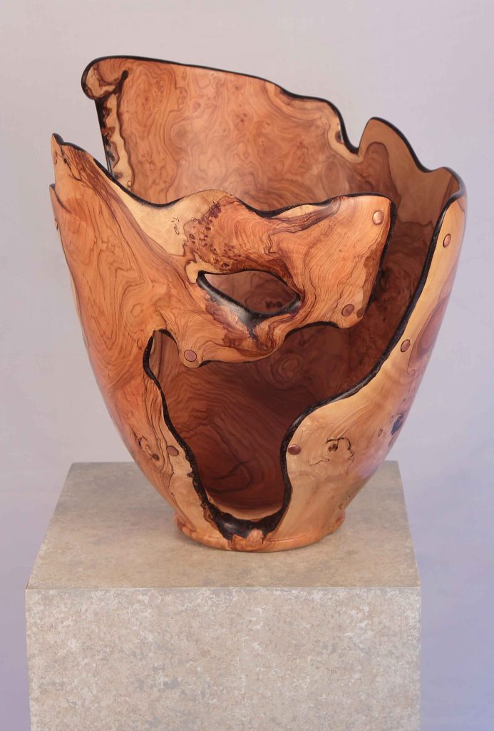 The result is a form that moves beyond functional woodturning into a distinctly expressive art piece.